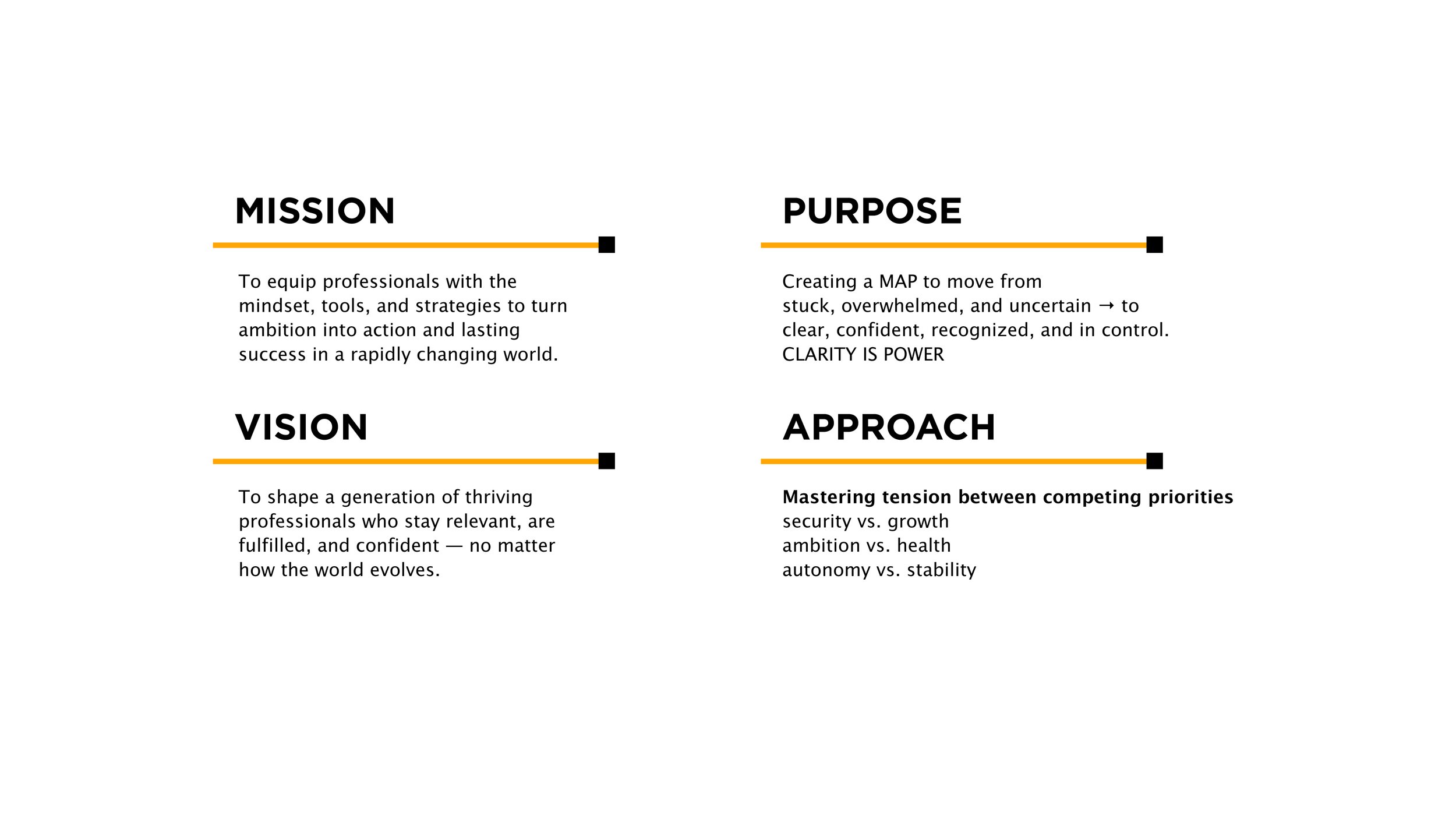 We refine how you express ideas, influence others, and shape perception — ensuring your message, actions, and leadership style reflect your best self.